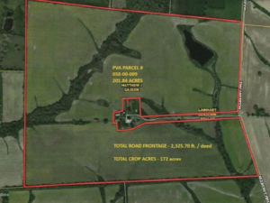 Real Estate: 201-acre crop farm in Shelbyville, KY, just minutes to I-64 and right in between Louisville and Lexington, KY. The farm consists of 172+/- crop acres, 2 ponds, a tobacco barn, and over 2300 feet of road frontage on Mulberry Pike. The soils on this farm are rich with Shelbyville Silt, Lowell-Faywood, and Nicholson, making up most of the farm. This farm will be sold as 1 parcel and is ready for crop season.