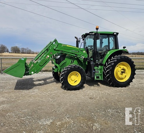2022 JOHN DEERE 6140M tractor, 996 hours, w/ JD 620R self-leveling loader