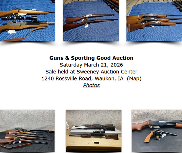 Sat., March 21, 2026 – Waukon, IA – guns and sporting goods auction advance.