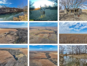 Tues., March 24, 2026 – Cottonwood Falls, KS – live and online real estate auction – 160 acres Chase County Flint Hills pasture, creek & limestone cabin.